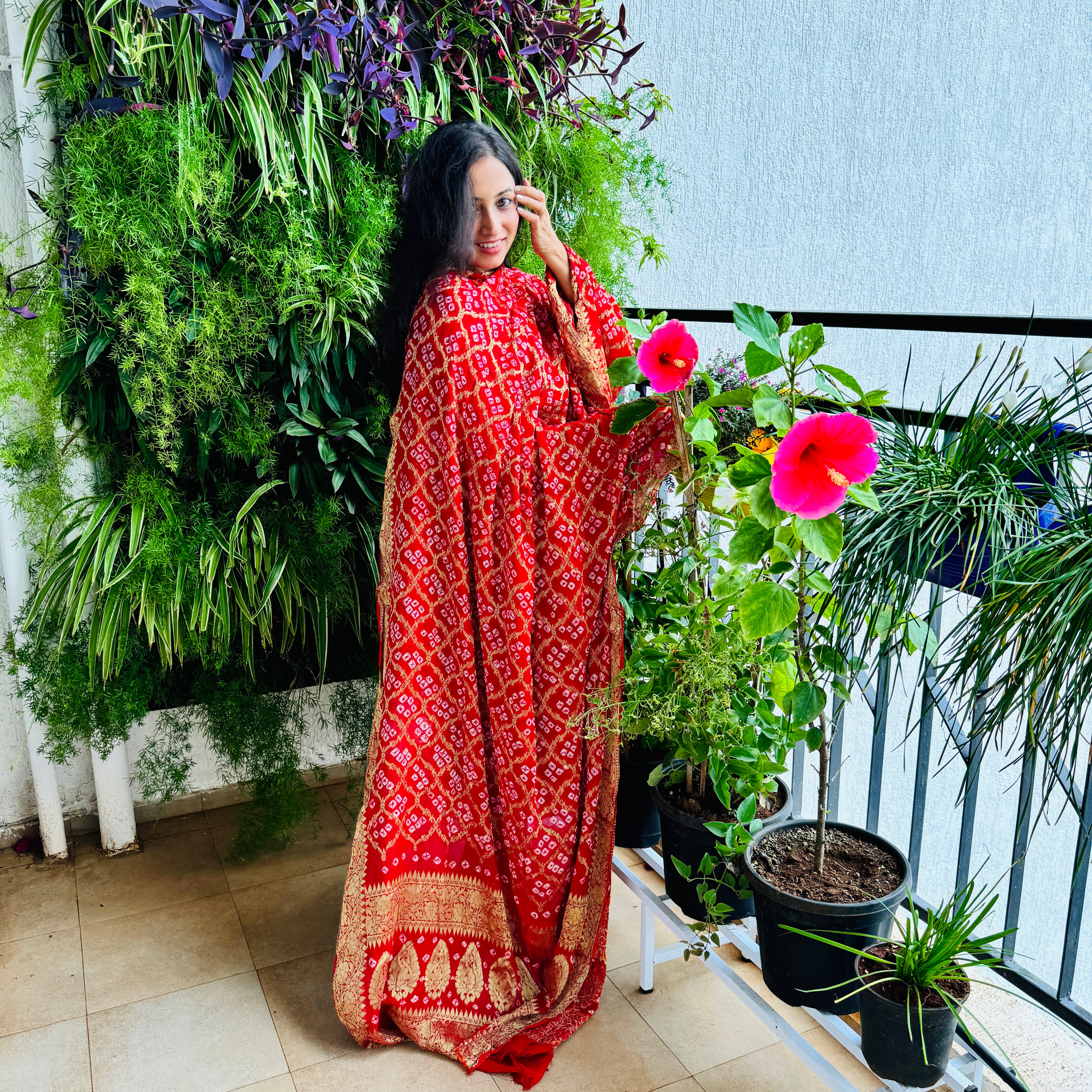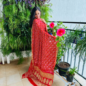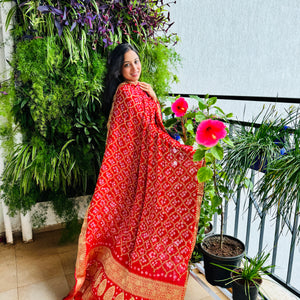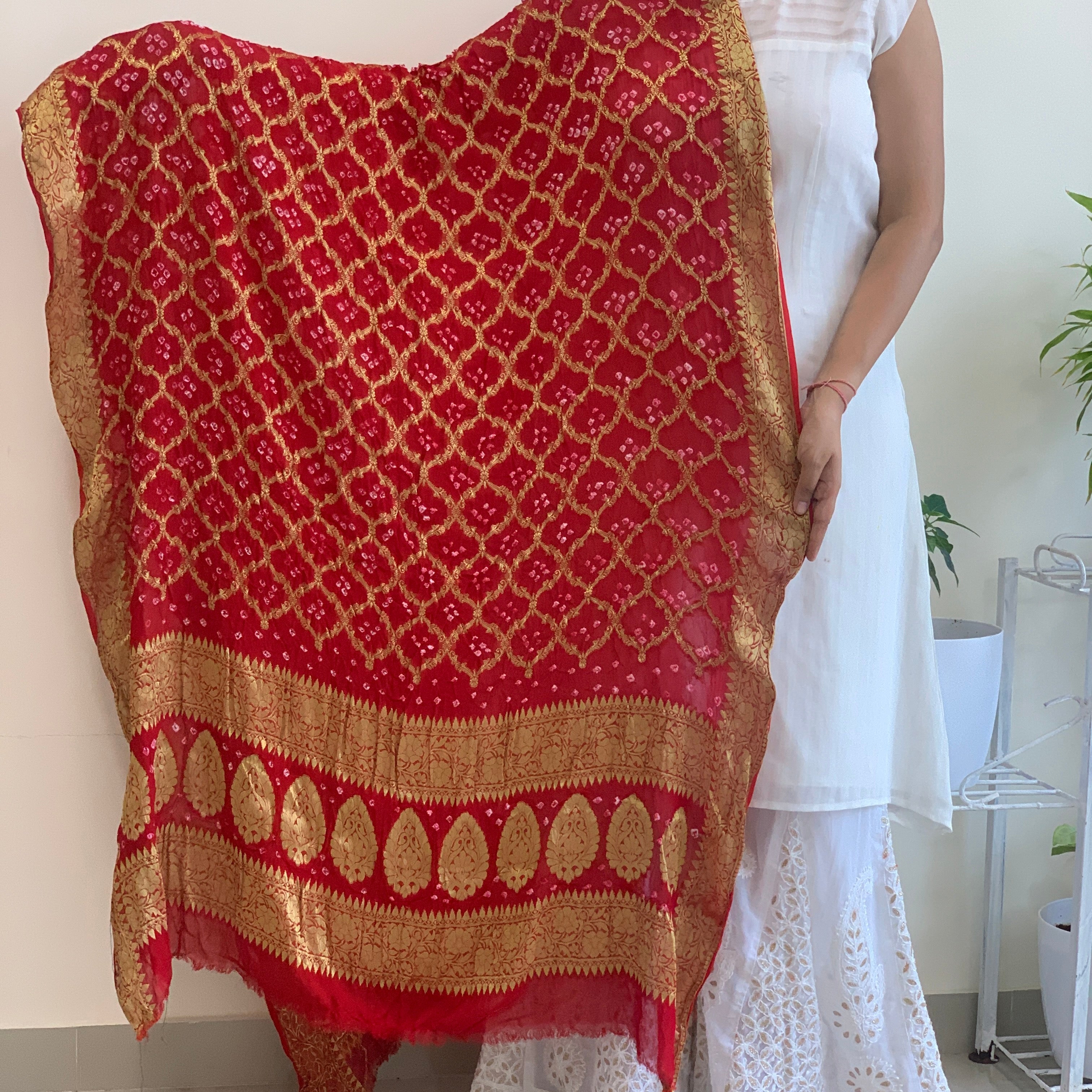 Pure Georgette Bandhani Banarasi Dupatta - Red