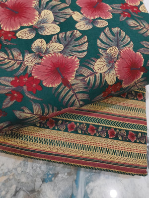 Pure hand block Cotton Bagru- Unstitched 2 piece Suit Material Red,Blue,Green