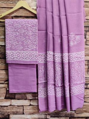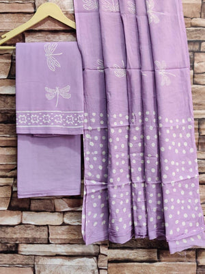 Pure hand block Cotton Bagru- Unstitched 2 piece Suit Material Purple