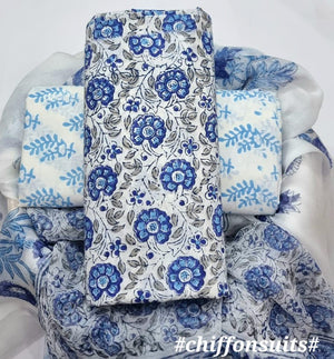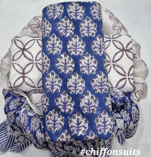 Pure hand block Cotton Bagru- Unstitched 3 piece Suit Material Blue