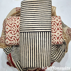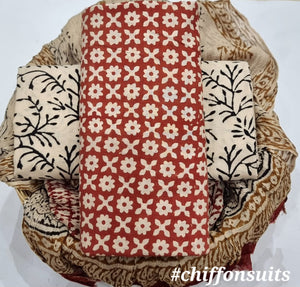 Pure hand block Cotton Bagru- Unstitched 3 piece Suit Material Colors
