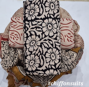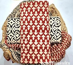 Pure hand block Cotton Bagru- Unstitched 3 piece Suit Material shades