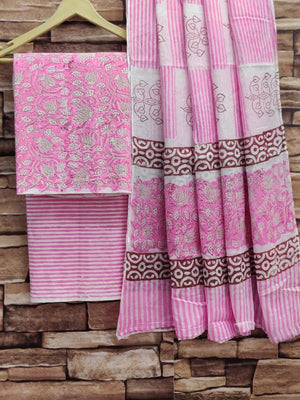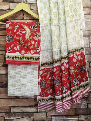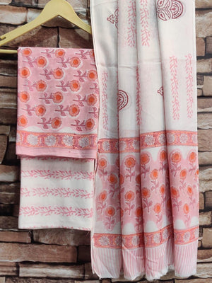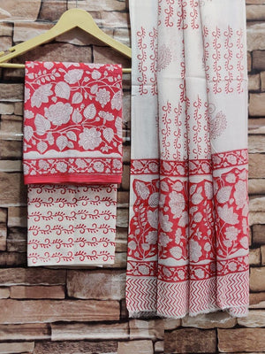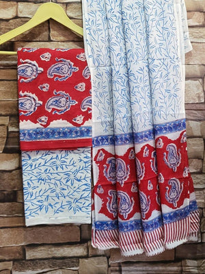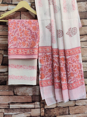 Pure hand block Cotton Bagru- Unstitched Suit Material With beautiful soft dupatta