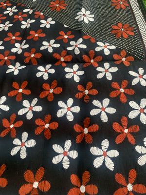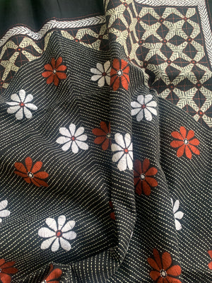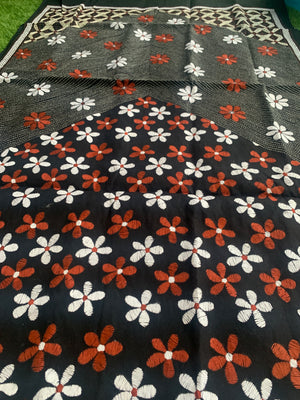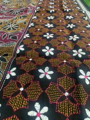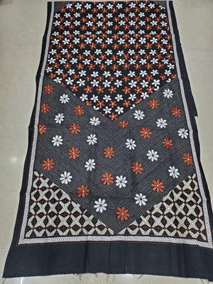 Be exclusive, be fashionable in our pure kantha stitch cotton dupatta. Floral motifs in multicolored threads handcrafted with love by artisans of Bengal. Team it with your kurta or even lehenga for a complete stunning look.