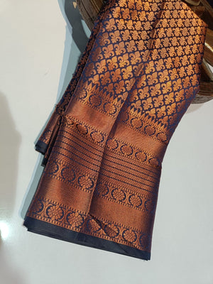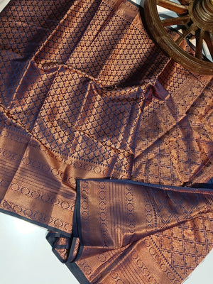 Tanchoi Silk Banarasi Saree - Copper Zari
