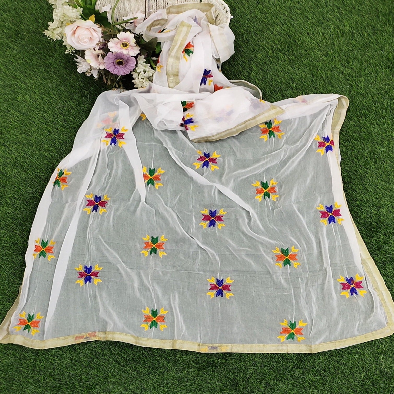 Traditional Simple Floral Butti Phulkari Dupatta - Various Colours