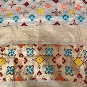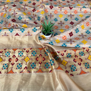 Woven Cotton Silk Patola Duaptta - White and Gold