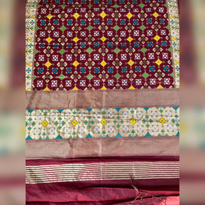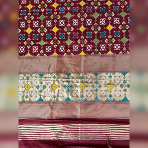 Woven Cotton Silk Patola Dupatta - Maroon and Gold with multi coloured weave